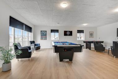 Huset er på 550 m2 og har internet. Husets primære rum er det store køkkenhjørne, som er kombineret med en stor, rummelig opholdsstue med gulvvarme, spiseplads og gode muligheder for afslapning. Køkkenet er fuldt udstyret, og der kan nemt laves en fantastisk middag til alle husets beboere. Dørene i huset er 90 cm brede, og man kan gå direkte i soveværelset fra køkkenalrummet, så det er forholdsvis handicapvenligt. I de dejlige møbler kan man nyde såvel danske som tyske kanaler på fjernsynet, hvor der også kan afspilles DVD. På de kølige aftener kan der tændes op i brændeovnen, som giver ekstra hygge. Huset har stor wellnessafdeling med stor, lækker swimmingpool med rutchebane, sauna og spabad. Der er 4 badeværelser, som alle har både toilet, brus og gulvvarme. I stueetagen er der 4 soveværelser til 8 personer. På første sal er der yderligere en dejlig opholdsstue med TV, 5 soveværelser til 10 personer samt en stor hems med 6 sovepladser. På 1. sal er der også et badeværelse med en dejligt badekar. Er du til aktivitet, så er husets aktivitetsrum lige noget for dig. Billardbord, bordfodbold, airhockey, Playstation 3 og bordtennis er blandt nogle af rummets muligheder. Huset er lavet som et energioptimeret hus, da der opvarmes med fjernvarme – som i Harboøre en en væsentlig billigere opvarmning end el. Pt er prisen for fjernevarme er kr. 2,5 pr enhed. Herudover betales der også for el og vand. Depositum vintersæson kr. 8000 og sommersæson kr. 5000. Har man el-bil eller en Plug-In hybrid, så er der opsat ladeboks fra ca. 1.6.23. Som lejer af dette hus har I gratis adgang til Harbøre Centret.