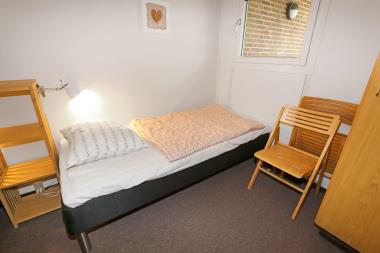 Pæn og hyggelig indrettet ferielejlighed beliggende på 1. sal. Kombineret stue og køkken. Stuen er indrettet med læder og polstermøbler, kabel-TV, radio, sovesofa med plads til 2 personer og gulvtæppe. Køkken med glaskeramisk komfur, køleskab med lille 10 l frostboks, opvaskemaskine, emhætte, linoleumsgulv. Badeværelse med toilet, håndvask og bruser. 1 soverum: 2ES og gulvtæppe. Fra stuen er der udgang til overdækket balkon med havemøbler.Trappen til 1. sal består af 14 trappetrin.