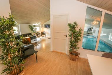 Huset er beliggende på en dejlig klitgrund og er særdeles velegnet til to familier. Sommerhuset er indrettet med kombineret stue og køkken. Køkkenet er veludstyret med keramiskkomfur, emhætte, opvaskemaskine, mikrobølgeovn og køle/ fryseskab. Der er god fryser kapacitet, hvis i får held til den store fangst, da huset har en ekstra fryser. I stuen er der flotte lædermøbler og huset bærer overalt præg af at være særdeles velholdt. Der er hyggelig brændeovn til at sprede hygge og varme en kølig sommeraften eller en efterårsaften med regn og rusk. I stuen er der TV med danske kanaler, bla. DR. Der er desuden parabol med mange tyske og enkelte engelske kanaler. Huset har en god internetforbindelse. Der er hyggelig udestue med gode møbler og gulvvarme. Et perfekt sted at fordybe sig i en god bog. Der er to gode badeværelser i sommerhuset. Begge er indrettet med toilet, håndvask, bruserniece og behagelig gulvvarme. Fra det ene badeværelse er der adgang til huset specielle tyrkiske bad som er godt for jeres velvære. Den flotte pool afdeling tilbyder en forfriskende svømmetur i poolen. En del af poolen er indrettet som børnepool til de yngste gæster. Der er desuden svømmetræner så I kan få en lang svømmetur. Det er det rene velvære at få kroppen masseret i spabadets varme vand. Huset byder på rigelige med muligheder for forkælelse til gæsterne. Der er fire pæne soveværelser i huset. De tre er indrettet med dobbeltsenge og et med to senge. Der er barneseng og højstol til rådighed for de yngste gæster.Der er to store terrasser der begge er lukket, så det er næsten altid muligt at finde læ, og nyde den friske havluft og solen. Huset råder over gode havemøbler, solsenge og der er grill til gæsternes rådighed. Til de yngste gæster er der sandkasse og gynger. Der er vaskemaskine og tørretumbler til gæsternes rådighed. Husdyr ikke tilladt. Depositum vintersæsonen kr. 4500 og sommersæsonen kr. 2200.