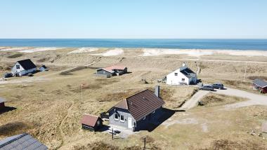 Flyvholmvej 27B er et godt indrettet stenhus der ligger på en naturklitgrund ved en blind, meget stille vej, hvor man kan finde god ro. Marehalmen gror spredt omkring huset og man ænser nærheden til Vesterhavet på den måde man skal have prøvet det for at beskrive det. Her er 3 hunde tilladt og gratis trådløs internetadgang.