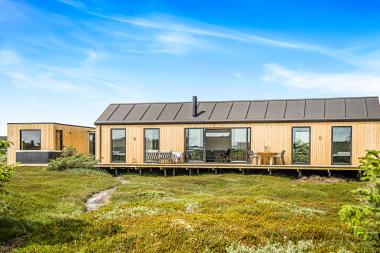 På en stor kuperet naturgrund i det skønne feriehusområde Vrist ligger dette nybyggede feriehus i kvalitetsmaterialer. Fra huset er der kun 200 meter til det brusende Vesterhav. Huset giver plads til op til 6 personer. Gratis internet. Oplader til el-bil. Husdyr er ikke tilladt. Ikke rygerhus.