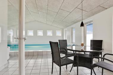 Flot, delvis renoveret (2019) Stenferiehus med fibernet, 2 badeværelser og lækkert poolrum med direkte udgang til lækker, sydvendt indhegnet terrasse. Kun 350 meter fra Vesterhavet. Huset har rigelig plads til 2 familier samt husdyr og er på hele 184 m2. Her bor man tæt på naturen, Vesterhavet samt indkøbsmuligheder.