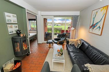 Køkkenet har glaskeramisk komfur, køleskab og en separat fryser på 40 liter.I stuen er der en stor sofagruppe med sofabord, brændeovn, samt kabel-tv med DR, TV2 tysk EUROSPORT1 og RTL, der er desuden Chromecast med mulighed for at streame egne programmer. Radioer ligeledes også inkluderet i stuen. Der er to soveværelser som er hver med en dobbeltseng. Fra det ene soveværelse er der udgang til een af husets 2 terrasser. Her kan man betragte morgensolen, mens man nyder lyden af Limfjorden. Badeværelset har en bruser, håndvask og toilet. Har man el-bil eller en Plug-In hybrid, så er der 4 Ladebokse til Type 2 ladestik, der kan lade op til 11 kWh ved Feriecenteret – de er lige efter miljøstationen.