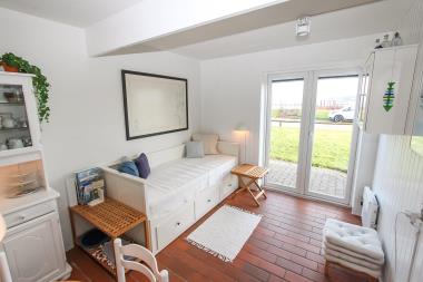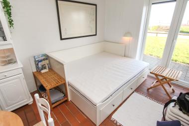Lejligheden, som er beliggende i stueetagen, er hyggeligt indrettet i maritim stil. Opholdsstuen er med dansk og tysk tv (RTL og Eurosport1), pæne møbler, brændeovn. 1 soverum: (1DS) + 1 DB-sovesofa med 2 sovemuligheder. Køkkenhjørne med spiseplads, komfur med glaskeramiske kogeplader, emhætte, opvaskemaskine, mikroovn, køleskab med lille fryseboks. Lille badeværelse med gulvvarme, toilet, håndvask og bruser. Klinkegulv i alle rum. Udgang til delvis overdækket terrasse med havemøbler. Har man el-bil eller en Plug-In hybrid, så er der 4 Ladebokse til Type 2 ladestik, der kan lade op til 11 kWh ved Feriecenteret – de er lige efter miljøstationen.
