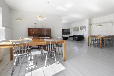 Tilbage i stueetagen befinder sig alle husets 8 soveværelser. Her er der fordelt 3 dobbeltsenge og 9 enkeltsenge på de forskellige værelser, der alle er stilrene og lyst indrettede.