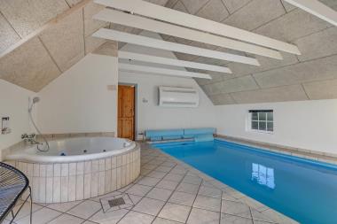 Dejligt, idyllisk, stråtækt stenferiehus med 5 soverum (1 dobbeltseng, 1 dobbeltseng, 1 dobbeltseng, 1 dobbeltseng, 2 enkeltsenge) med nye senge. Huset er 255 m2, hvilket gør, at der er god plads, når vennerne eller familien skal samles. Rummelig opholdsstue med flotte, nye lædermøbler, sækkestole, spiseplads, stort fladskærms-TV med danske og tyske kanaler, Bluetooth adgang til TV og Højttalere, hyggelig brændeovn, klinkegulv og store vindues partier med udsigt til fjorden. Veludstyret køkkenhjørne med opvaskemaskine, mikroovn, emhætte, keramisk komfur, køleskab med fryseboks og klinkegulv. Fra stuen er der adgang til pool afdelingen med en stor pool, spabad samt adgang til et badeværelse med bruser, toilet og håndvask samt adgang til en dejlig sauna til de kolde dage. Derudover er der endnu 2 toiletter hvor det ene er med toilet, brus, vaskemaskine og tørretumbler. Alle toiletter og hele pool området har klinkegulv med gulvvarme. Huset er indrettet med et stort aktivitetsrum med lille bar, amerikaner køleskab, billard, og ekstra TV, og det giver virkelig mulighed for mange hyggelige timer. Har man el-bil eller en Plug-In hybrid, så er der til huset et ladestik. 1 husdyr tilladt. Ikke ryger hus. Huset lejes ikke ud til ungdomsgrupper. Depositum vintersæson kr. 7000 og sommersæson kr. 3500