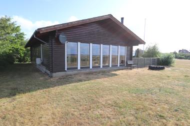 Feriehus i træ beliggende på en naturgrund med en panoramaudsigt over Limfjorden og området. 60 m2 lukket træterrasse. Stue: Brændeovn, farve-TV med parabol (kun tyske programmer), stereoanlæg med CD. Køkken: El-komfur, køleskab med fryser, opvaskemaskine og mikroovn. 3 soverum: 1DS + 1DS + 2S. Badeværelse: Toilet, håndvask, bruser, vaskemaskine. Stor lukket terrasse med havemøbler. Carport og gynger. Gratis trådløs internet