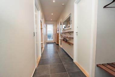 En flot entre’ med mørke klinker byder jer velkommen til en godt indrettet lejlighed på 90 m2 med 2 soveværelse (1DS, 1DS). Nyd den unikke opholdsstue med lædermøbler, spiseplads, brændeovn, TV med danske og tyske kanaler, DVD/CD/Radio afspiller. Fantastisk panorama udsigt til inddæmningen ved slusen i Thorsminde og til de høje klitter ved Vesterhavet i baggrunden. Moderne og veludstyret køkkenhjørne med opvaskemaskine, mikroovn, keramiske kogeplader, indbygningsovn, emhætte, køleskab med fryseboks. Der er flotte trægulve i opholdsrum, køkkenhjørne og i soveværelser. Lækkert badeværelse med toilet, håndvask, bruser, klinkegulv med gulvvarme, vaskesøjle med vaskemaskine og tørretumbler samt spabad til 2 personer. Ikke ryger lejlighed. 1 husdyr tilladt.