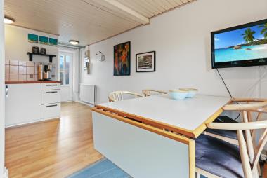 Ca. 40m2 stor lejlighed i stueplan. Indgang gennem en lille entré til en kombineret opholdsstue og køkkenhjørne. Opholdsstue med dobbelt-sovesofa, TV med tyske og danske kanaler, CD/Radio og spisebord. Køkkenhjørne med komfur med glaskeramiske kogeplader, emhætte, mikroovn og køleskab med lille fryseboks. 1 soveværelse(1DS) . Badeværelse med toilet, håndvask og brusemulighed. Ikke ryger lejlighed. Max 2 husdyr tilladt.