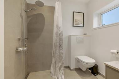 Det pæne badeværelse er udstyret med toilet, håndvask, bruser og gulvvarme. Derudover findes både vaskemaskine, internet, barnestol til de mindste – og huset er naturligvis et ikke-rygerhus.