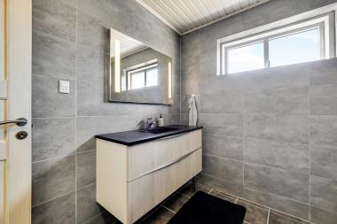 Når du går gemmem husets hoveddør mødes du af en flot entre med vaskemaskine, tørretumbler, ekstra håndvask og køkkenbordsplads. Fra entreen er der adgang til et lækkert køkken med alt i hvidevarer samt et lille ekstra rum med dart og siddepladser. Køkkenet råder bla over en glaskeramisk kogeplade, emhætte, opvaskemaskine, indbygningsovn, spiseplads og køleskab med fryseboks. flot minimalistisk opholdsstue med en dejlig sofa, spisebord, Smart-TV med danske kanaler samt mulighed for streaming af TV / radio / Apps samt Chromecast, så har du en mobiltelefon eller et andet device med kan du streame hvad du nu har abonnement. 3 soveværelser (1DS, 2ES, 2ES) samt 2 badeværelser. Det ene flotte, store badeværelse er med toilet, håndvask, bruser og flot klinkegulv med gulvvarme. I det andet badeværelse er det toilet, bruser og håndvask. I alle opholdsrum er der praktiske og rengøringsvenlige trægulve. Ikke ryger hus. Max. 1 husdyr tilladt.
