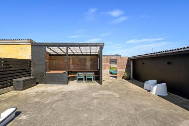 Huset er beliggende på en grund centralt i den charmerende havneby Thyborøn tæt på stranden og der er muligt at parkere direkte ved huset. Gårdhave med havemøbler, grill og solvogne. Herudover byder gårdhaven på udebruser, trampolin og sandkasse. Gårdhaven har endvidere to overdækkede terrasser.