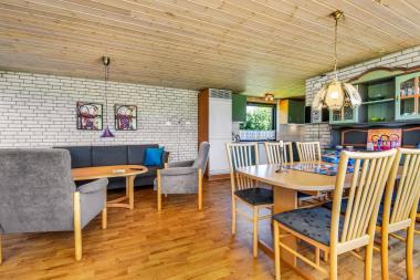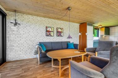 Pænt feriehus 58 m2 med 2 værelser (2ES + 1 KS). Mindre entré byder jer velkommen. Fra entréen er der adgang til et pænt køkkenhjørne med opvaskemaskine, komfur med klaskeramiske kogeplader, emhætte, mikroovn og køleskab med lille fryseboks. I forlængelse af køkkenet er der er hyggelig opholdsstue med spiseplads, polstermøbler, CD-afspiller og radio, TV med danske DR-kanaler og tyske kanaler varmepumpe og en dejlig brændeovn som nemt kan opvarme hele huset. Mindre renoveret badeværelse med toilet, håndvask, bruseniche og klinkegulv. Ikke rygerhus. 1 husdyr er tilladt.