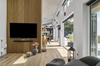 Det er gulvvarme i hele huset, som drives af en energivenlig luft til vand varmepumpe, som hele året rundt sørge for, at huset har et minimalt forbrug, et perfekt indklima og en optimal komfort.