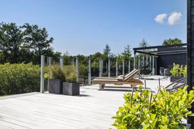 Den store, unikke vestvendte træterrasse er privat og giver mulighed for altid at finde læ. Der er sol fra tidlig morgen til sen aften – perfekt til morgenkaffe, solbadning eller aftensmad under åben himmel. Gode havemøbler, solvogne og chaiselonsofa sofa gør oplevelse perfekt.