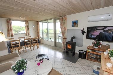 56 m2 træferiehus fra 1971 og renoveret i 2008. Vægge og lofter er i træ og der er 3 soveværelser (1DS, 2ES 1ES). Kombineret opholdsstue og køkkenhjørne. Lige på den anden side af køkkenhjørnet er spisebordet placeret. Opholdsstue med polstermøbler, tv med danske og tyske kanaler og cromecast til streaming, radio/CD og en dejlig brændeovn samt varmepumpe som skaber ekstra hygge og hjælper med at sparer på varmeregningen. Pænt køkkenhjørne med elektrisk komfur med keramiske kogeplader, emhætte, mikroovn, køleskab med fryseboks og opvaskemaskine. Ekstra fryser på 80L i køjerummet. Pænt badeværelse med toilet, bruser og håndvask. Der er linoleumsgulve i alle rum, som gør at huset er nemt at rengøre. Ikke ryger hus. Max 1 husdyr tilladt.