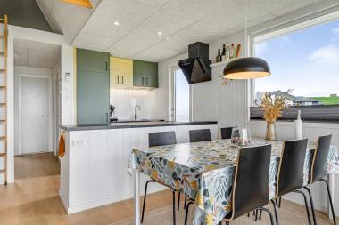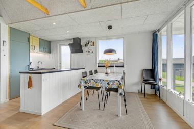 Pænt og hyggeligt inderettet, 55 m2 træferiehus med 3 soveværelser (1DS, 2ES 1S). Kombineret opholdsstue og nyt køkkenhjørne. Lige på den anden side af køkkenhjørnet er spisebordet placeret. Herudover er der tv med danske og tyske kanaler samt mulighed for streaming af TV / radio / Apps via Chromecast. En dejlig brændeovn og varmepumpe sørger for ekstra hygge og for at der altid er dejligt varmt uanset årstid og hjælper til med en billigere forbrugsafregning. Pænt og nyt køkkenhjørne med komfur med induktions kogeplader, emhætte, opvaskemaskine, mikroovn, køle-/fryseskab. Pænt badeværelse med toilet, bruser og håndvask. Fra stuen er er kig til Vesterhavet og klitterne. Der er Linoliumsgulve i alle opholds- og i soverum med 2S, i værelse med 1S og værelset med 1DS er der gulvtæppe. Ikke ryger hus. Husdyr ikke tilladt.