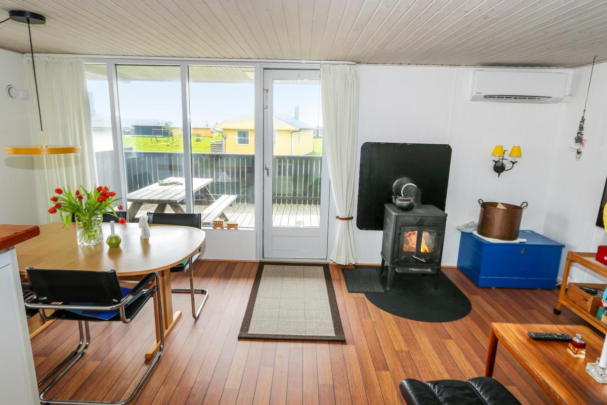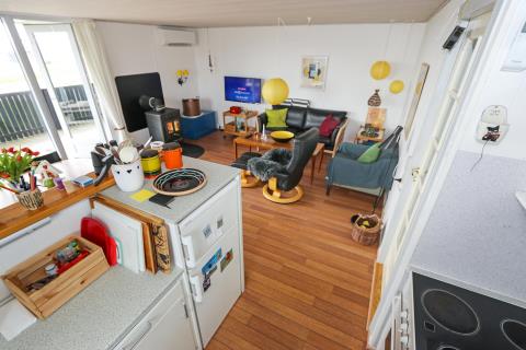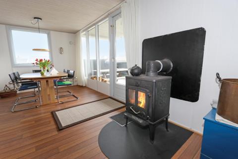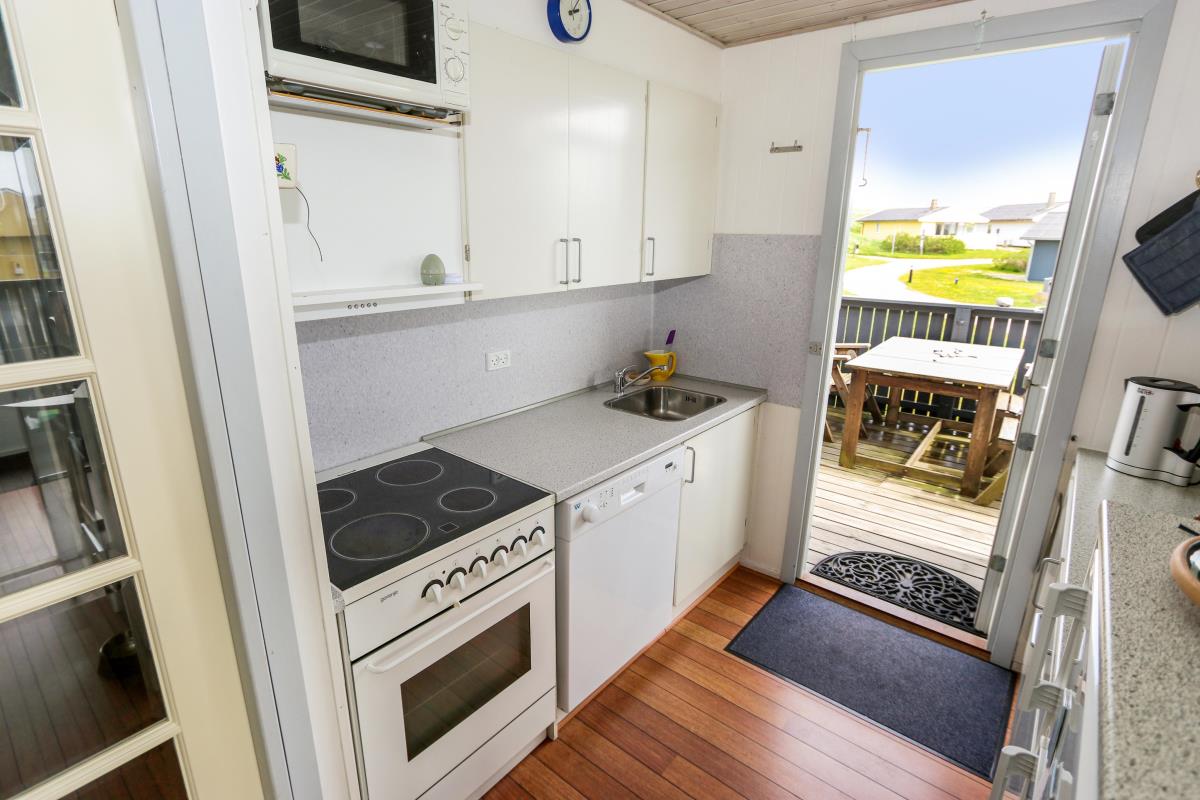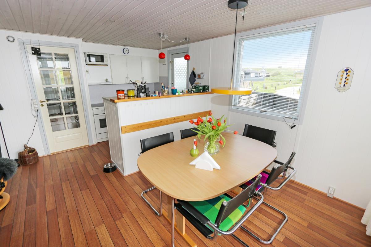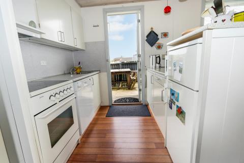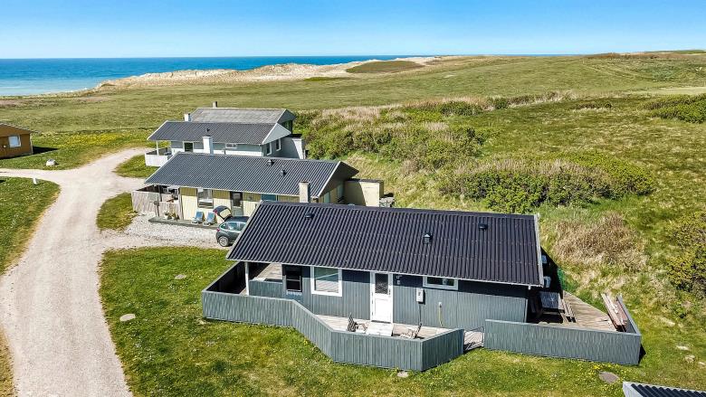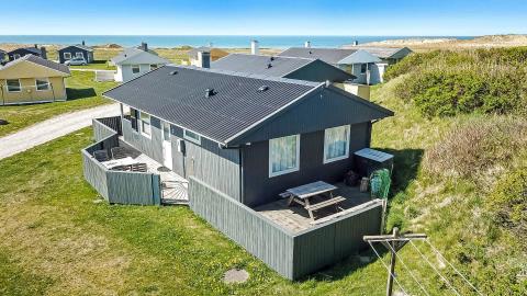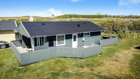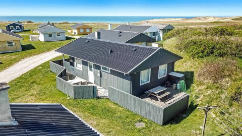 55 m2 træferiehus som er bygget i 1971 og delvis renoveret i 2015. 2 soveværelser (1DS, 2S). Kombineret opholdsstue og pænt, nyere køkkenhjørne. Lige på den anden side af køkkenhjørnet er spisebordet placeret. Herudover er der tv med danske og tyske kanaler. Varmepumpe og en dejlig brændeovn søger for en billig varmeregning og ekstra hygge. Pænt veludstyret køkkenhjørne med komfur med kogeplader og ovn, emhætte og køleskab med lille fryseboks, opvaskemaskine. Flot badeværelse med toilet, bruser, håndvask, vaskemaskine og klinkegulv med gulvvarme. Fra stuen er der kig til Vesterhavet og klitterne. Der er trægulv i hele huset. Køle-/fryseskab i køjerummet. Ikke ryger hus. Husdyr ikke tilladt.