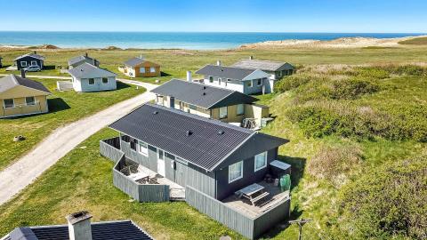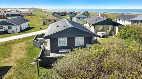 Træferiehus med Gratis Internet og delvis hav- og klitkig til Vesterhavet. Beliggende i hyggelige og rolige Trans Ferieby kun 300m fra Vesterhavet.
