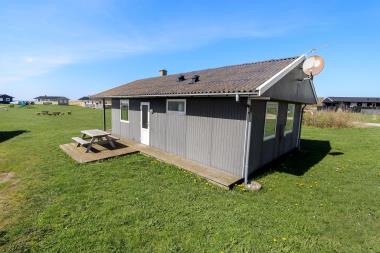 Velholdt feriehus med delvis udsigt til Vesterhavet.Huset ligger på en 600 Kvm åben naurgrund i et feriehusområde kun ca.150 M fra Vesterhavet. Huset er bygget i 1971 og renoveret i 2003 med ny stue og 2007 med nyt badeværelse. Væggene og lofterne er af træ. Gratis internetadgang. Køkken er kombineret med stuen og indeholder køleskab med fryser og opvaskemaskine.. Stuen er udstyret med brændeovn, stereoanlæg og fjernsyn med parabolantenne (dog kun tyske kanaler). Nyrenoveret badeværelse med brusenichie samt vaskemaskine . Huset har 3 soverum: 1 med dobbeltseng. 1 med 2 enkeltsenge og 1 med 2 køjepladser. Desuden er der terrasse med havemøbler. Ny fælles legeplads lavet i 2012, hvor der findes legehus, rutschebane og bålplads.