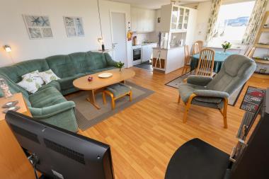 55 m2 træferiehus som er bygget i 1971 og delvis renoveret i 2015. 3 soveværelser (1DS, 1DS, 1KS). Kombineret opholdsstue og pænt, nyere køkkenhjørne. Lige på den anden side af køkkenhjørnet er spisebordet placeret. Herudover er der tv med danske og tyske kanaler, DVD/radio/CD. Varmepumpe og en dejlig brændeovn søger for en billig varmeregning og ekstra hygge. Pænt veludstyret køkkenhjørne med komfur med kogeplader og ovn, emhætte og køleskab med lille fryseboks. Flot badeværelse med toilet, bruser, håndvask, vaskemaskine og klinkegulv med gulvvarme. Fra stuen er er kig til Vesterhavet og klitterne. Der er trægulv i hele huset. Køle-/fryseskab i køjerummet. Ikke ryger hus. Max 1. husdyr tilladt.