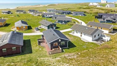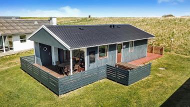 56 m2 træferiehus med 3 soveværelser (1DS, 2ES 1KS). Kombineret opholdsstue og nyere køkkenhjørne.  Lige på den anden side af køkkenhjørnet er spisebordet placeret. Herudover er der tv med Chromecast, samt mulighed for streaming af TV / radio / Apps via Chromecast. Så har du en mobiltelefon eller et andet device med kan du streame hvad du nu har abonnement, radio/CD og en dejlig brændeovn som skaber ekstra hygge og varme. Pænt køkkenhjørne med komfur med keramiske kogeplader, emhætte, og køleskab med lille fryseboks. Pænt badeværelse med toilet, bruser og håndvask. Fra stuen er er kig til Vesterhavet og klitterne. Der er trægulve i alle opholds- og soverum. Ikke ryger hus. 1 husdyr tilladt.