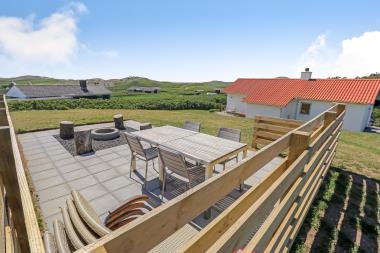 Huset er beliggende på en velplejet grund med flere gode terrasser og bålplads. Der er havemøbler og grill. En af terrasserne har udgang fra stuen og er delvis overdækket. Der er altid mulighed for at finde et sted med læ på en af de mange terrasser. Huset ligger blot 150 m fra stranden og Vesterhavet byder hver dag på nye fortællinger og oplevelser. I Thyborøn og Lemvig som ligger ca 20 min. Kørsel fra huset er der gode indkøbsmuligheder, restauranter og aktiviteter. Et fantastisk flot hus med en god beliggenhed meget tæt på Vesterhavet.