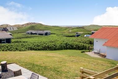 Stenferiehus beliggende med delvis udsigt over Vesterhavet fra grundens højeste punkt. Huset ligger på en 2450 Kvm åben naturgrund i et feriehusområde kun ca. 120 m fra Vesterhavet. Huset er bygget i 1971 og renoveret i 2014 med nyt køkken gulve m.v. Gratis internetadgang. Køkken er kombineret med stuen og indeholder køleskab med fryser. Stuen er udstyret med brændeovn, radio og fjernsyn med parabolantenne (dog kun tyske kanaler), der er desuden en playstation 3 med diverse spil til. Badeværelse med brusenichie Huset har 3 soverum: 1DS + DB + 1seng. Terrasse med havemøbler og bålplads