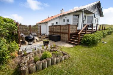 Huset er beliggende på en velplejet grund med flere gode terrasser og bålplads. Der er havemøbler og grill. En af terrasserne har udgang fra stuen og er delvis overdækket. Der er altid mulighed for at finde et sted med læ på en af de mange terrasser. Huset ligger blot 150 m fra stranden og Vesterhavet byder hver dag på nye fortællinger og oplevelser. I Thyborøn og Lemvig som ligger ca 20 min. Kørsel fra huset er der gode indkøbsmuligheder, restauranter og aktiviteter. Et fantastisk flot hus med en god beliggenhed meget tæt på Vesterhavet.