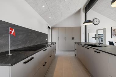 Straks efter I når Vejlby Klit og drejer ned mod huset, oplever I den gode beliggenhed tæt ved Ferrings sø og tæt ved Vesterhavet. Huset er på hele 332 m2 og har 10 dejlige soverum, som alle er udstyret med løse senge som kan stilles efter behov. Derudover forefindes 6 sovemuligheder fordelt på en hems der bedst er egnet til børn da pladsen kan være trang. I hjertet af huset findes et stort, veludstyret køkken/alrum med alt i service/køkkengrej og alt i hårde hvidevarer. Køkkenhjørnet har bl.a. keramiske kogeplade med 5 kogefelter, 2 indbygnings ovne, stor emhætte, 2 opvaskemaskiner, mikroovn, køleskabe og fryser. Slap af i de nye, bløde kvalitetsmøbler. Se TV på dansk og tysk på et af husets fjernsyn eller stream din musik eller din yndlingsserie. Der er praktiske hårde gulve med gulvvarme i hele huset, som også er særdeles rengøringsvenlige.