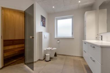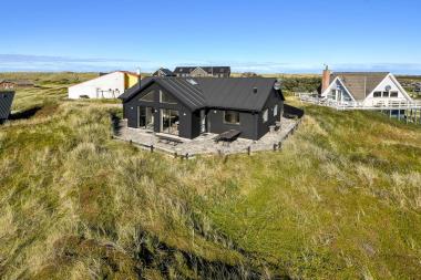 På en 1.250 m2 dejlig, kuperet naturgrund med en fantastisk udsigt til klitterne, og kun 200 m fra Vesterhavet, ligger dette pragtfulde feriehus på 124 m2. Huset er minimalistisk i sit udtryk og praktisk indrettet. En flot entrè indeholdende skabe, ektra håndvask samt vaskemaskine og tørretumbler byder velkommen. Køkken / alrummet er med loft til kip og klinkegulv med gulvvarme. Fra opholdsstuen er der udsigt til klitterne ved Vesterhavet og den er indrettet med smart-TV, med mulig for streaming af TV / radio / Apps, nye lædermøbler, og spisebord. Slap af foran den knitrende brændeovn som sammen med varmepumpen hjælper med at reducere udgiften til varmeregningen. Dejligt køkkenhjørne med pragtfuld udsigt over landskabet. Der er alt i service og køkkengrej, opvaskemaskine, keramisk kogeplade, indbygningsovn, emhætte, køleskab med fryseboks og mikroovn. Der er ovenlysvinduer, der sammen med højden i opholdstuen giver et fantastisk indeklima. Stort, lækkert badeværelse med bruseniche, håndvask, toilet, direkte adgang til sauna og klinkegulv med gulvvarme. Fra entréen er der adgang til et ekstra badeværelse med bruser, toilet, håndvask og klinkegulv med gulvvarme. Huset har 3 fine soveværelser med trægulve og skabe (1DS, 1DS, 1DS) – heraf en seng med ekstra længde (220 cm). Ydermere er der en hems til begejstring for børn og barnlige sjæle. Der er gratis trådløs internetadgang. I garagen aktiviteter tilrådighed som bordtennis, dart, bob samt siddepladser. Rygning er ikke tilladt. Husdyr må ikke medbringes.