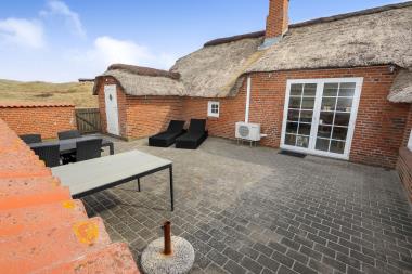 Unikt beliggende, velholdt og charmerende stråtækt feriehus med pool i første række til Vesterhavet. Tættere på Vesterhavet og områdets dejlige sandstrand kan man ikke komme. Huset stand og kvalitet bærer tydeligt præg af at ejer ofte selv kommer i huset. Gratis internetadgang.