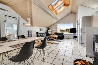 Det åbne køkken er indrettet med alle tænkelige hjælpemidler som bl.a. opvskemaskine, mikroovn og køle/fryseskab. Stuen er med brændeovn, fladskærms-TV med DR1 og TV2 samt parabol med tyske kanaler, der er desuden DVD, CD-afspiller og spillekonsol. I stuen er der også en skøn brændeovn, som man kan nyde fra de komfortable møbler med en god bog i hånden og en varm kop te eller kaffe. 4 store soveværelser med 1DS + 1DS + 2S + 4K. Til de små gæster er der barneseng og barnestol til rådighed. 2 badeværelser begge med gulvvarme og bruser, det ene er i forbindelse med husets poolrum, og herfra er der direkte adgang til saunaen. Poolrummet har en 15 m2 stor pool med undervandsbelysning og svømmetræner samt et spabad til 4 personer. Her kan man rigtig slappe af med svømmeture i poolen og massage i spaen for til sidst at gå ind i saunaen og få kroppen varmet igennem. Der er installeret 2 varmepumper i huset som gør huset meget energivenligt og besparende. 2 hunde er tilladt. Har man el-bil eller en Plug-In hybrid, så er der opsat ladeboks ved huset. Dette er et ikke rygerhus. Depositum vintersæson kr. 3000 og sommersæson kr. 2200