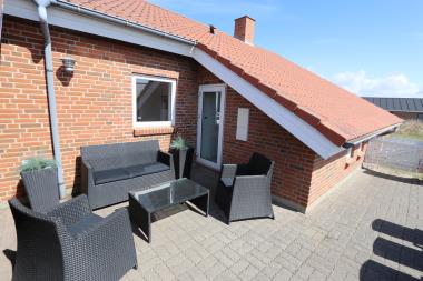 Der er hele 5 solvogne og havemøbler samt grill til huset. Disse kan man nyde på den enten 50 m2 store, sydvendte solgård eller på den østvendte terrasse. Herudover er der sandkasse og gynger til børnene. Udflugtsmuligheder er naturligvis Vesterhavet som ligger 250 meter fra boligen, ellers ligger havnebyerne Lemvig og Thyborøn cirka 15 km fra huset. Der er gratis adgang for alle beboere af feriehuse til Harboøre centeret,som ligger 5 km fra huset.