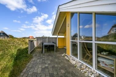 Terrasseforholdene er fremragende. Der er nemlig 3 solterrasser – en syd – en vest og en østvendt terrasse, så der altid er mulighed for at finde læ. Der er havemøbler og grill som kan flyttes efter behov. Husets beliggenhed blot 180 m fra Vesterhavet gør det nemt at komme på stranden til fods. Vesterhavet byder hver dag på nye oplevelser og på stranden er der mange forskellige aktiviteter man kan få tiden til at gå med, f.eks. bade, bygge sandslotte, fiske, vandre eller blot sidde og slappe af og nyde bølgernes brusen og vinden i håret. Dette hus er meget velegnet til et par eller den lille familie som ønsker at bo tæt på Vesterhavet i et skønt feriehus.