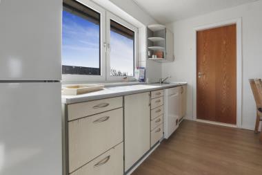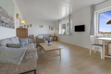 Lejligheden er enkelt og praktisk indrettet. Køkken med spiseplads, glaskeramisk komfur, emhætte, opvaskemaskine og køleskab med fryseboks. Fra køkkenet er der adgang til et stort soveværelse (1DS). Opholdsstue med TV med tyske og danske kanaler og sovesofa (2 personer). Renoveret badeværelse med toilet, håndvask, bruser, vaskemaskine og klinkegulv. Hele lejligheden opvarmes af et nyt og bæredygtigt luf til vand anlæg.