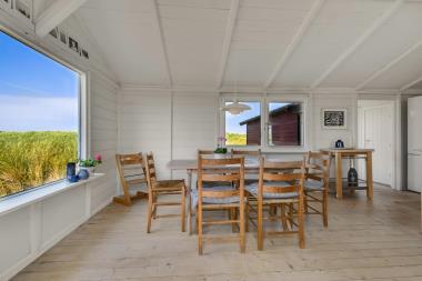 I 1. række til klitterne ligger dette hyggelige træhus og det har et af området bedste beliggenheder. Huset kan bedst beskrives som et rigtigt badehus i samme stil som et badehotel. Huset har en unik beliggenhed og har panorama udsigt fra både opholdsstuen og soveværelse til klitterne lige ved Vesterhavet. Fra huset er der direkte gangsti til Vesterhavet, som kun ligger cirka 100 meter fra huset.