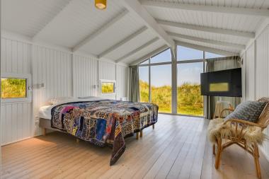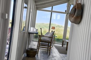 I 1. række til klitterne ligger dette hyggelige træhus og det har et af området bedste beliggenheder. Huset kan bedst beskrives som et rigtigt badehus i samme stil som et badehotel. Huset har en unik beliggenhed og har panorama udsigt fra både opholdsstuen og soveværelse til klitterne lige ved Vesterhavet. Fra huset er der direkte gangsti til Vesterhavet, som kun ligger cirka 100 meter fra huset.
