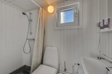 2 bygninger udgør dette unikke badehus som i alt er ca. 106 m2 stort. I hovedhuset tager en kombineret spisestue og åbent køkken imod. I køkkenet er der alt i service og køkkengrej, keramisk kogeplade med 4 zoner, bordovn og køleskab med fryseboks. Fra køkkenet går I gennem en lille fordeler gang ind i huset opholdsstue. Gennem de store panoramavinduer åbenbaret sig straks den unikke udsigt. Et fantastisk syn som ikke findes mange steder i området. Her kan I sidde i den dejlige sofa og nyde udsigt eller tænde op i den helt nyindstalleret brændeovn. Huset har også et stort smart-TV som hvor der er mulighed for streaming af TV / radio / Apps, så har du en mobiltelefon eller et andet device med kan du streame hvad du nu har abonnement til. TVét har ingen antenneadgang, men er forbundet via Internettet og kan derfor kun modtage programmer, som kan tages via Internettet, men kan derfor placeres i både opholdsstue og soveværelse efter behag. Fra stuen er der adgang til et stort, fantastisk master-bedroom (1DS). Herfra er der en lige så betagende udsigt samt en dejlig stor dobbeltseng. Det er en helt speciel oplevelse at vågne op til den fantastiske udsigt. Lille badeværelse med toilet, bruser og håndvask. Ikke ryger hus. Husdyr ikke tilladt