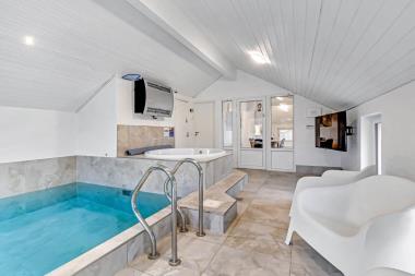 Huset har fire gode soveværelser (2 med dobbeltsenge, 1 med køjeseng, 1 med enkeltsenge), to badeværelser og et fantastisk poolområde. Her finder I en 5,5 x 3 m stor pool, spabad med plads til 4 personer, sauna og endnu et badeværelse – alt sammen med gulvvarme og energieffektivt luft-til-vand anlæg. Bluetooth-højtalere og ekstra TV gør pooltiden endnu mere underholdende.