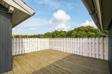 Der er terrasser næsten hele vej rundt om huset, hvoraf en del er overdækket, så det er næsten altid muligt at finde godt med læ. Der er havemøbler til begge terrasser. Aftensmaden kan tilberedes på husets grill, og nydes de lyse sommeraftner på terrassen. Til de yngste gæster er der sandkasse ved huset. Området byder på mange udflugtsmuligheder. Prøv at stå tidligt op i ferien, og tage på fiskeauktion i Thyborøn. Det er en oplevelse at se de mange kasser fisk skifter ejer på få minutter. Thyborøn byder på et spændende havnemiljø og Jyllandsakvariet med mange spændende fisk og aktiviteter for børn. Kystcentret i samme område er også et besøg værd. Fra Thyborøn er der en lille færge til Agger, hvor i kan besøge Danmarks første Nationalpark Thy. Lemvig er en hyggelig by ved Limfjorden, kun 15 min fra sommerhuset. Der finder i en hyggelig gågade samt et stort udvalg i dagligvarer forretninger og specialbutikker.
