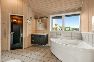 Velbeliggende spasommerhus, beliggende i roligt sommerhusområde. Huset er udstyret med spabad og sauna. Der er 2 badeværelser i huset hvilket gør den velegnet til to familier. Sommerhuset er indrettet til 8 personer samt 1 hund.