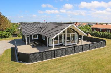 Dette flotte sommerhus ligger ideelt på en skov/naturgrund kun 450 m fra Vesterhavet og ligeledes kun 200 meter fra købmand. Ligeledes ligger Ferring Sø kun ca. 400 meter væk fra huset. Huset er bygget i 2005 og fremstår lyst og venligt med store vinduer og terrassepartier. Køkkenet er velindrettet og godt udstyret og kombineret med stue med moderne og komfortable møbler. Særdeles veludstyret m. f.eks. CD , DVD, tørretumbler og 40 liters fryser og meget mere. Parabol dog kun med tyske kanaler.Der er gratis internet i huset. 2 toiletter heraf et med spabad og direkte adgang til sauna. 3 soveværelser: Dobbeltseng + dobbeltseng + 1 værelse med 1 enkeltseng og 2 køjer Huset er omgivet af terrasse, så man kan altid finde læ og nyde solen. Havemøbler, liggestole, gynge og sandkasse. Husdyr er tilladt. Ikke ryger hus.