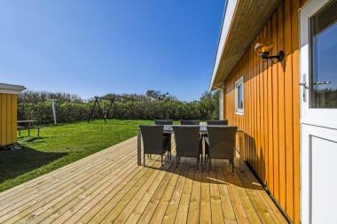 Huset er omgivet af et stort træterrasseanlæg. Hele terrassen er omkranset af et stakit og en bekymringsfri, lukket have, hvor både børn og hunde kan slå sig løs. Gyngestativ, havemøbler, parasol og grill. Området omkring Vejlby og Ferring sø ligger ikke langt fra det brusende Vesterhav, indkøbsmuligheder, legeplads og stranden. Naturen indbyder til udendørsaktiviteter året rundt – uanset om det er gåture i landskabet omkring søen eller en strandtur. Der er kun 300 meter til Vejlby Torv med købmanden og Cafe John Wayne, så dette gør kun ferien endnu mere komfortabel. Vejlby Klit er omgivet af vand på begge sider med Vesterhavet mod vest som altid er et besøg værd. Her kan man bade, lave sandslotte, fiske, flyve med drage eller ganske enkelt blot gå en lang tur og nyde ensomheden eller familiens nærvær. Det samme gælder iøvrigt den tætte beliggenhed til Ferring Sø hvor der går en vandrerute rundt om.