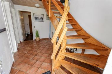 Rummelig stenferiehus i 2 etager beliggende på en naturgrund. Åben terrasse med havemøbler og grill. Stue: Brændeovn, farve-TV med parabol (kun tyske kanaler), stereoanlæg med CD. Trådløst internet. Køkken: El-komfur, køleskab med fryser, opvaskemaskine, mikroovn. 5 soverum: 1DS + 1DS + 2S + 2S + 2S. Badeværelse: Toilet, håndvask, bruser, sauna og spabad, vaskemaskine og tørretumbler. Toilet 1. sal med håndvask og toilet. åben terrasse med havemøbler og grill. 1 husdyr tilladt.