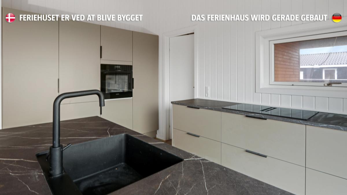 Køkkenet er moderne og fuldt udstyret med bl.a. induktionskogeplade, indbygningsovn, emhætte, køle-/fryseskab og opvaskemaskine.