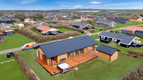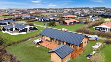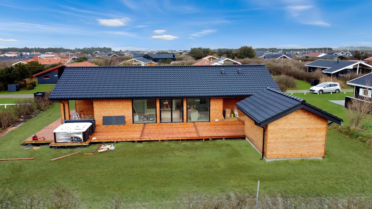 Dette nyopførte feriehus står klar til udlejning fra den 11. april 2026. Huset er ideelt beliggende med kig til klitterne og byder på skønne udendørs faciliteter, herunder en delvist overdækket terrasse, udendørs jacuzzi og masser af plads til solbadning og afslapning. Her er rammerne sat for den perfekte ferie.