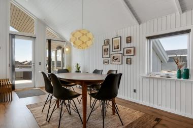 Huset er beliggende på en naturgrund tæt på Vesterhavet og Ferring Sø. Der er en lækker stor delvis overdækket og lukket terrasse med flere havemøbler, solvogne og grill. Her er der altid mulighed for at finde en plads i solen eller i læsiden. Huset er beliggende 200 m fra Ferring sø og her har man mulighed for at følge den nyanlagte sti omkring søen. Ønsker man at besøge stranden ved Vesterhavet er der blot 350 m fra huset til stranden. Her er der mange muligheder for aktiviteter kun fantasien sætter grænsen. En køretur med bil ca. 15 minutter fra huset og du kommer til havnebyen Thyborøn hvor der findes flere gode attraktioner, restauranter og butikker. Kører man i den anden retning kommer man til den gamle handelsby Lemvig som ligger i meget naturskønt område, her findes der ligeledes gode shoppingmuligheder, restauranter og museer. Dette flotte nyrenoverede hus passer både til et par eller den lille familie som gerne vil bo godt og tæt på Vesterhavet.