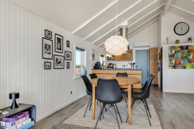 Flot og nyrenoveret og veludstyret feriehus i træ beliggende i et roligt feriehusområde tæt på Vesterhavet og Ferring Sø. Gratis internetadgang.