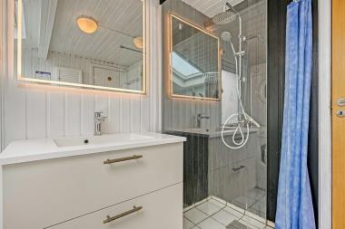 Flot træferiehus på 63 m2 fra 1994 og er siden løbende renoveret. Husets største rum er et åbent køkken og opholdsstue med paketgulv fra 2025. Stuen er hyggeligt indrettet med hjørnesofa, TV med danske og tyske kanaler, spillekonsol samt mulighed for at streame via chromecast til egne streamingtjenester. Spiseafdeling med udsyn på terrassen gennem det store vindue, som giver et godt lysindfald. I stuen er der også en brændeovn, som bidrager til energivenlig opvarmning af huset. Det åbne køkkenhjørne er udstyret med det nødvendige køkkengrej samt glaskeramisk kogeplade, indbygninsgovn, emhætte, mikrobølgeovn, køle-/fryseskab og opvaskemaskine. Køkkenalrummet byder på at man kan samles hele familien på et sted. Fra køkkenalrummet er der adgang til gangen, hvorfra man kommer ud i husets 3 soveværelser (2S, 1DS, 1DS) og badeværelse. Badeværelset er med toilet, håndvask, bruser, spa, sauna og klinkegulv med gulvvarme. (Sauna udgår i 2026) Ikke ryger hus. Max 1 husdyr tilladt.